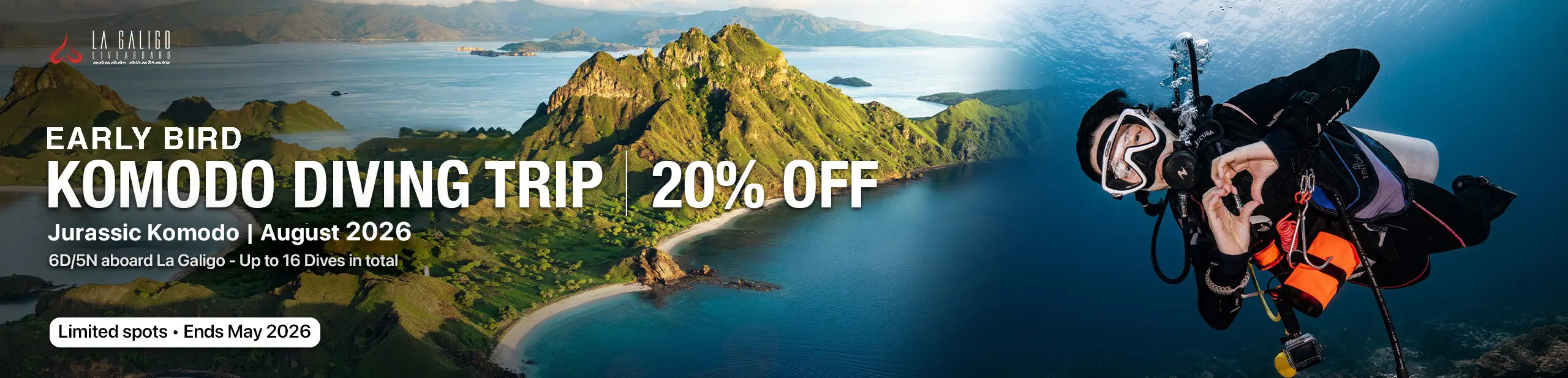 Get 20% OFF your Komodo diving trip in August 2026 when you book for 4 guests.